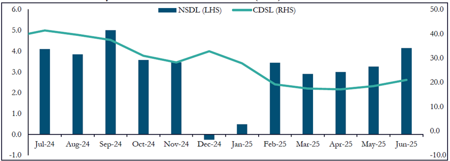 Source: SEBI Bulletin July 2025, citing NSDL and CDSL sources