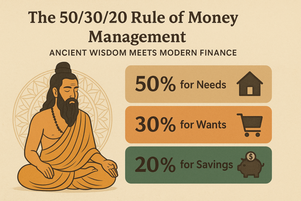 Wealth has always been a subject of deep thought and discipline in Indian culture. Ancient Indian texts see wealth as a resource that is to be managed wisely for a balanced life. The money is to be divided between spending, saving and managed responsibly for values and growth. This article while taking cues from the ancient principles explains 50/30/20 modern rule of money management.